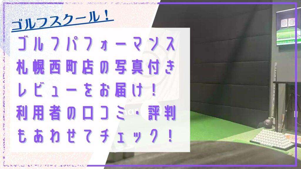 この記事では、ゴルフパフォーマンス札幌西町店を写真付きレビューをお届けしています。 実際に体験レッスンに行ってみると、コーチの丁寧な指導で短時間でも上達のコツをつかめました! 私のレビューが知りたい人はこの記事を、ゴルフパフォーマンス札幌... -