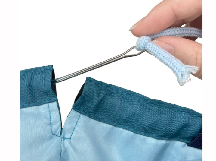100均で手に入るゴム通し(ゴム通し棒)と適度な幅のゴムを用意し、アームカバーの裾からゴムを通し直すだけで、伸縮性が復活します。