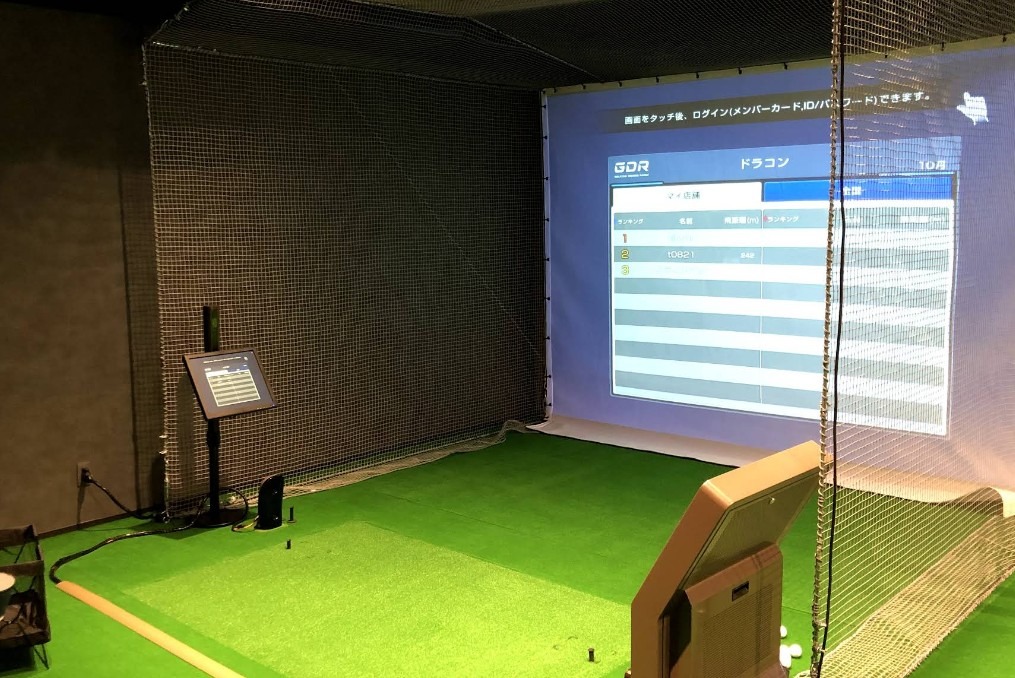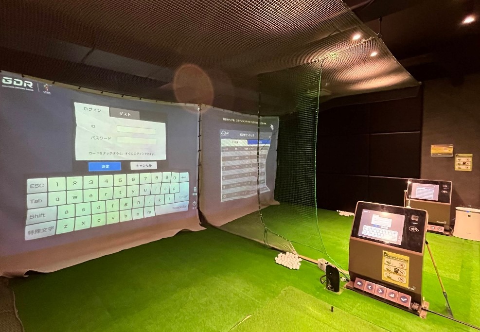チキンゴルフ博多駅前店のレッスンブースには最新のシミュレーションゴルフが完備されています。