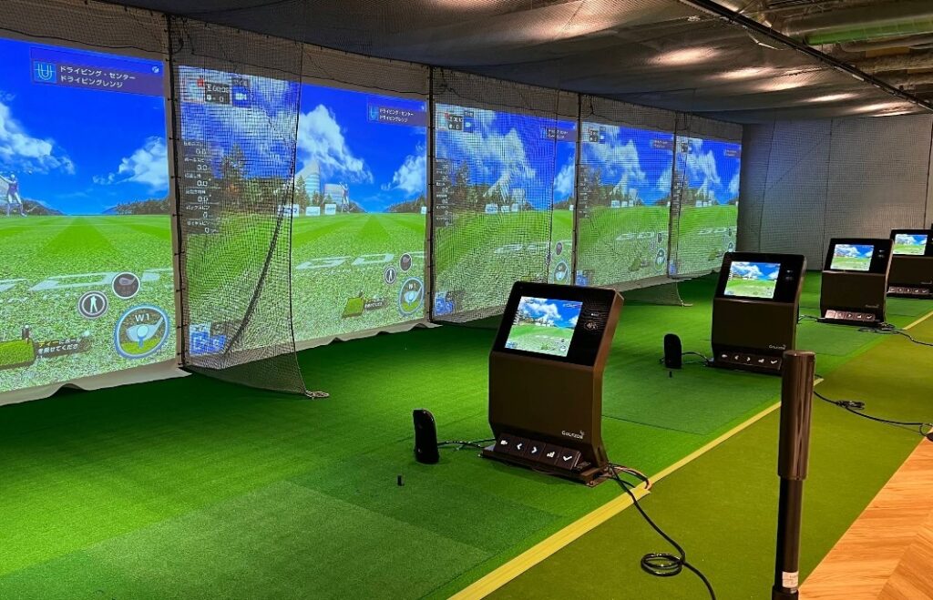 チキンゴルフ池袋店の練習ブースは全打席に最新のシミュレーションゴルフ設備を用意。