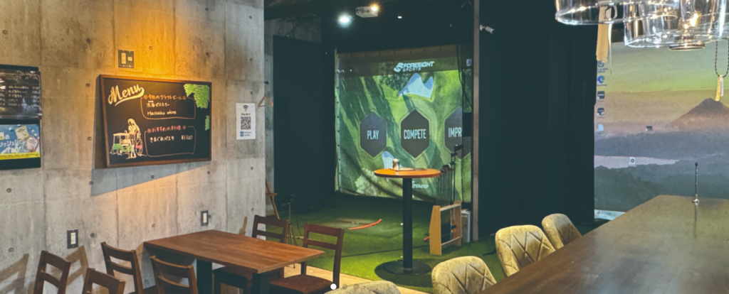 シミュレーター完備で実際にクラブを振れる一方、服装やスコアに縛られず、飲み会やデート感覚で利用できるのが特徴です。
