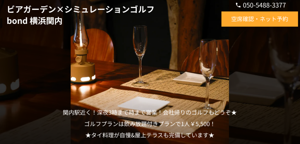 | 店舗名 | ビアガーデン×シミュレーションゴルフbond 横浜関内 |