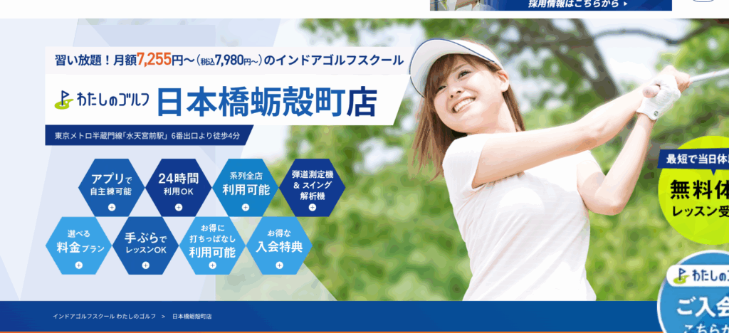 わたしのゴルフ日本橋蛎殻町店 | 約731円(打ち放題プランで12回利用の場合) |