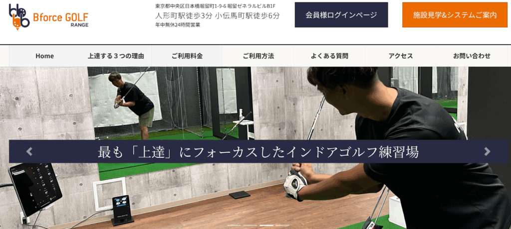 特徴 | 馬喰町駅徒歩1分、24時間営業のインドアゴルフ施設 |