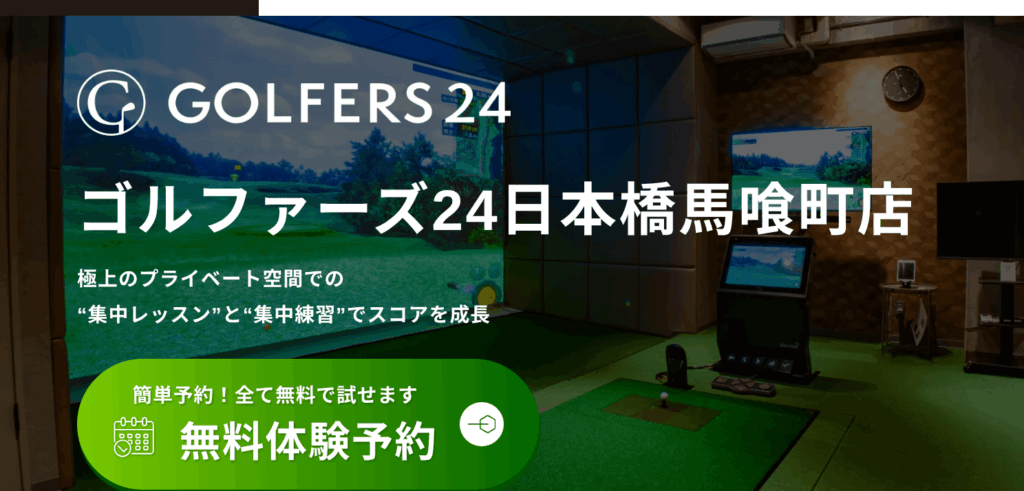 GOLFERS24日本橋馬喰町店は、JRの馬喰町駅から徒歩1分、小伝馬町駅からも2分と好アクセスの24時間営業インドアゴルフレッスンです。