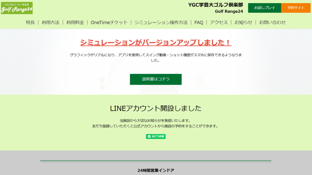 YGC学芸大ゴルフ倶楽部Golf Range24は、学芸大学で人目を気にせずシミュレーター中心に練習したい方に向いているインドアゴルフ施設です。