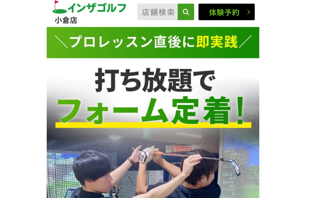 シミュレーションゴルフレンジ小倉は、プロゴルファー監修のマンツーマンレッスン付き通い放題プランがあり、フォームを丁寧に見直しながら継続して通いたい方と相性の良いスクールです。
