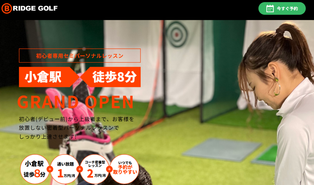 | 特徴 | プロゴルファー監修のマンツーマンレッスン付き。通い放題会員と都度利用の両方を選べる。 |