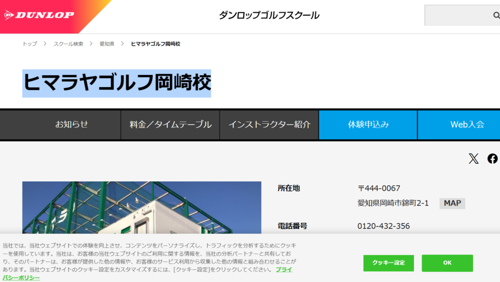 | ヒマラヤゴルフ岡崎校 | 約2,750円(月4回想定) | 岡崎市戸崎町 |