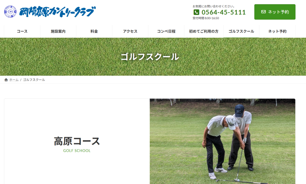 岡崎高原カントリークラブのゴルフスクールは、実際のコースを使った実践型レッスンが受けられるのが特徴です。