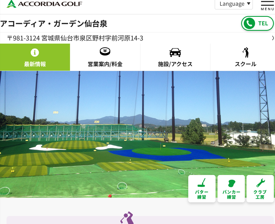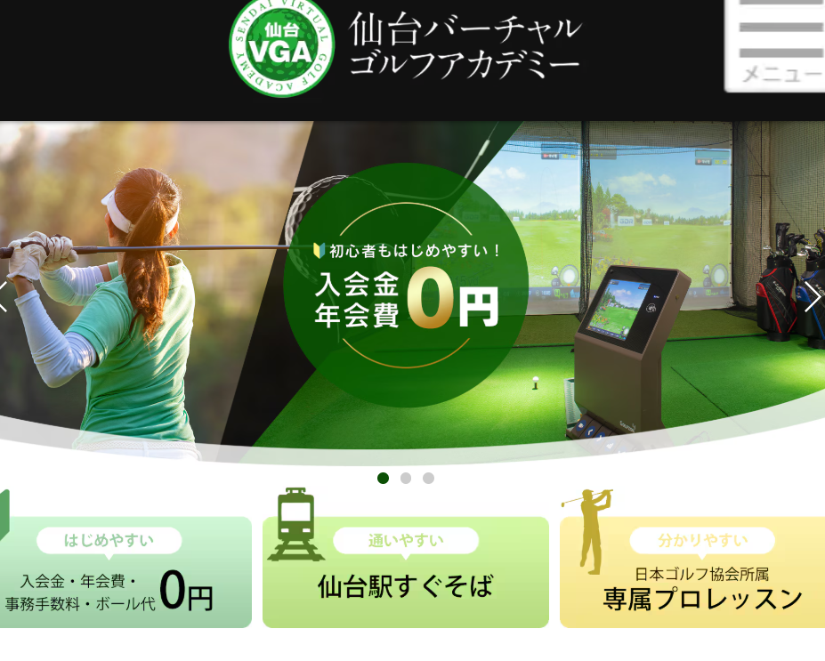 | 公式サイト | https://chicken-golf.com/schools/miyagi-sendai/ | https://www.stepgolf.co.jp/store/sendai-nagamachi_top/ | https://www.accordiagolf.com/practice/sendaiizumi/index.php |