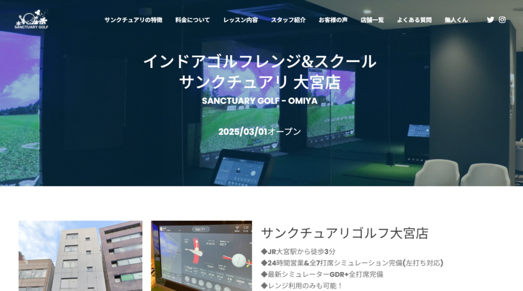 | 公式サイト | https://smartgolf.jp/store/omiya-takahanacho/ | https://www.sanctuarygolf.jp/omiya/ | https://golf.sportsplus.co.jp/golfschool-omiya/ |