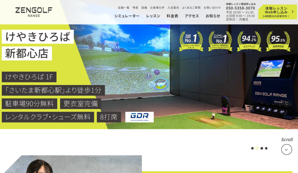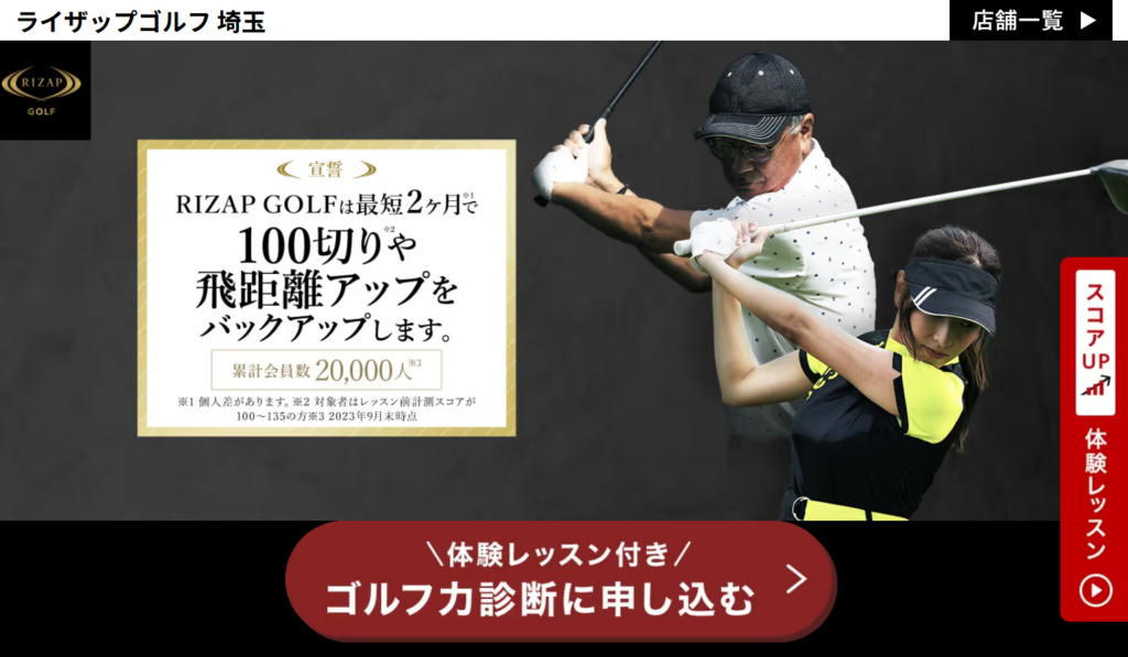 上の表に記載しているのは、大宮にお住まいの方や通勤・通学されている方におすすめのゴルフレッスンTOP3です。