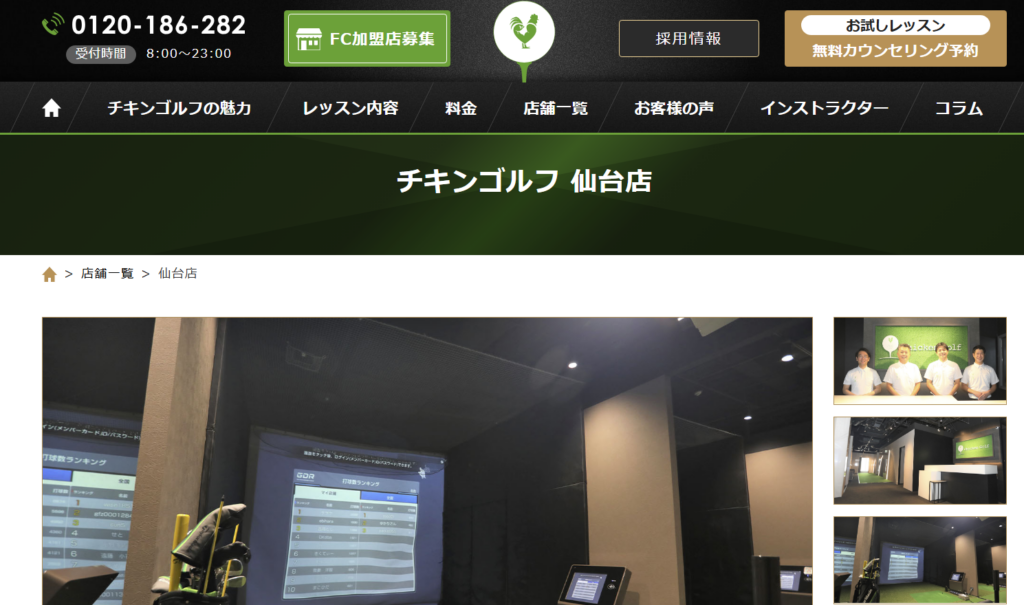 公式サイトhttps://chicken-golf.com/schools/sendai/https://sendai-indoorgolf.com/https://amsgolf.net/