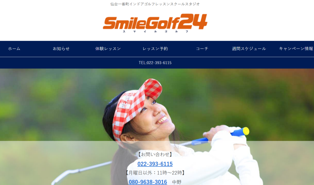 仙台市青葉区エリアのゴルフレッスン②:仙台一番町インドアゴルフレッスンスクールスタジオスマイルゴルフ24