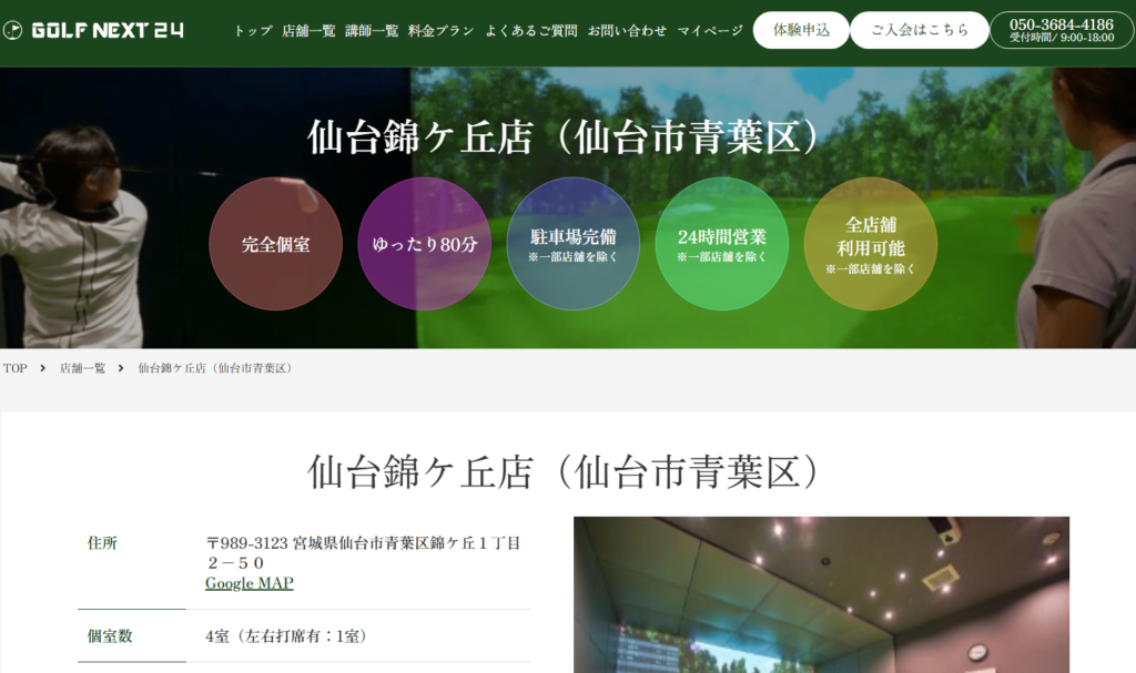 GOLF NEXT 24 仙台錦ケ丘店は、仙台市青葉区で人目を気にせず個室で練習したい方に向いているインドアゴルフ施設です。