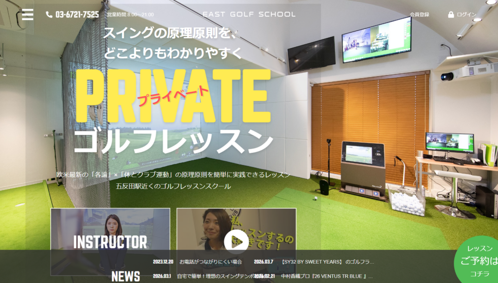East golf schoolは、五反田駅から徒歩5分の場所にある予約制完全個室のマンツーマンゴルフレッスンスタジオです。