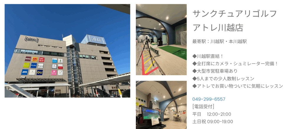 - 中でもおすすめなのはサンクチュアリゴルフアトレ川越店!