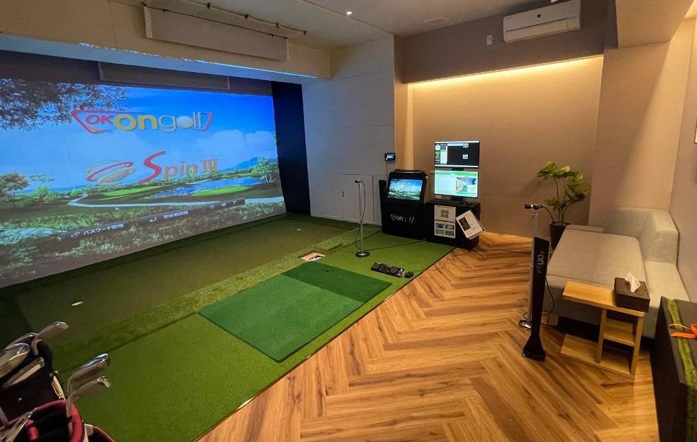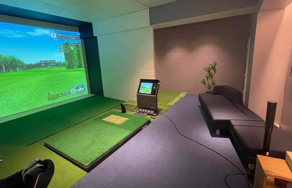 施設面では、2ルームに最新シミュレーターが3台、さらには珍しい地面が動くパター練習場も設置されており、本格的な練習環境が整っています。